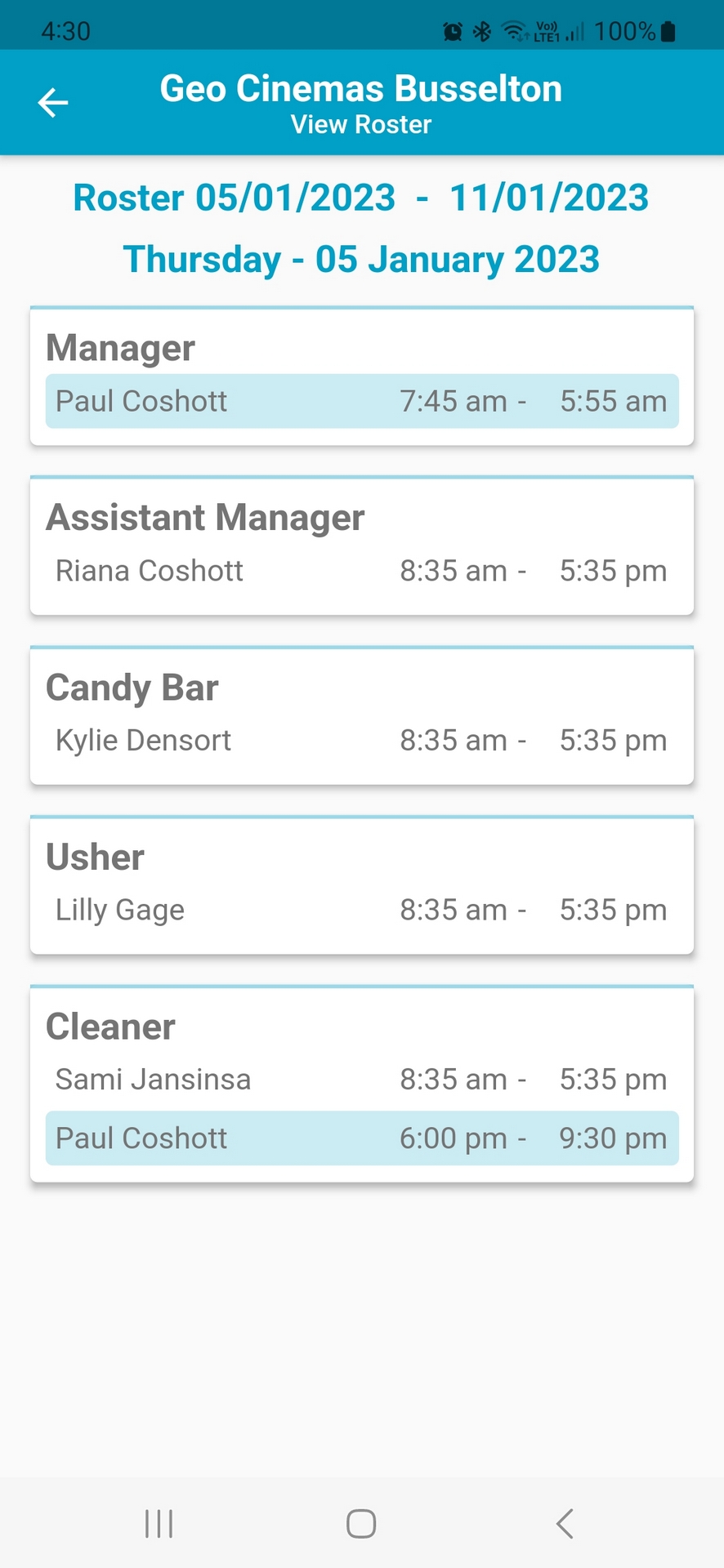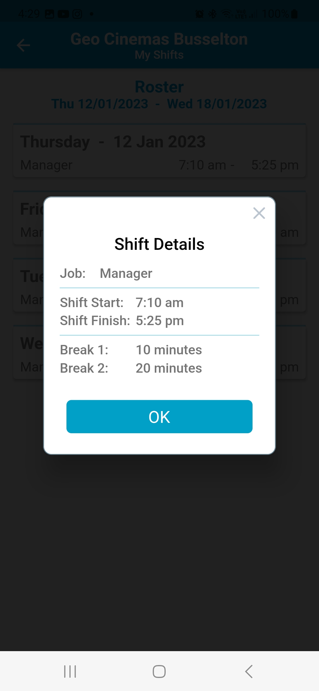 And if you work more than one job where the business uses Roster Me On, you can switch between the different work places.